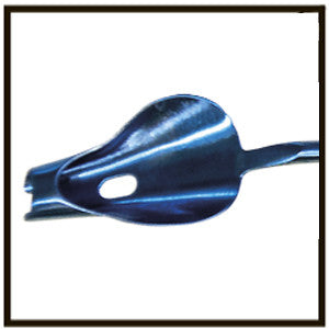 - Flattened 1 mm wide, 8 mm long spatula with a top central groove for bisecting stroma
