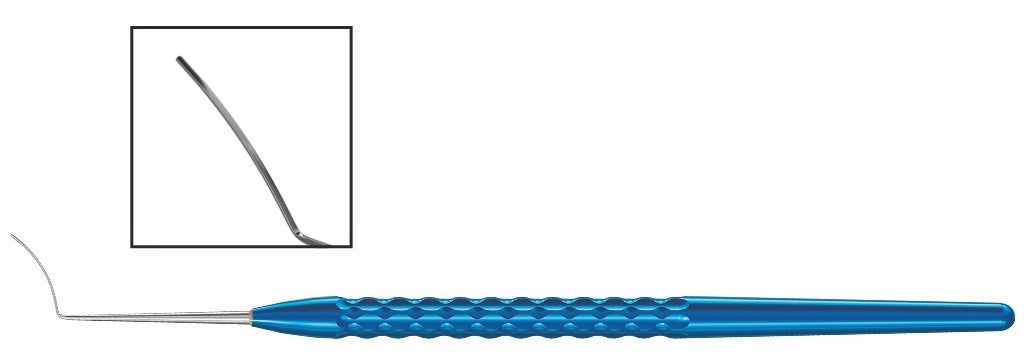 The Iris Repositor Spatula comes with a highly polished internal face of the curved tip for precise and atraumatic tissue manipulation.